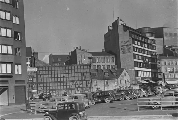 parkeringsplass, bakgårder, bindingsverk, forretningsgårder, kontorbygninger