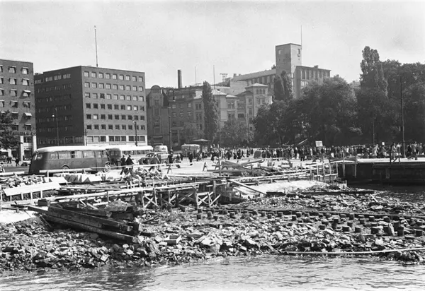 bygging av ny honnørbrygge, brygge, plass, mennesker, kontorbygninger