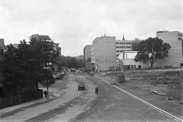 Klingenberg kino sees mellom de to kontorbyggene på høyre side av gaten.