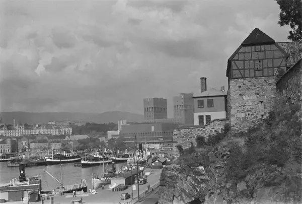utsikt, fjord, havn, skip, dampbåter, by, Rådhuset, Vestbanestasjonen, Victoria terrasse, Slottet
