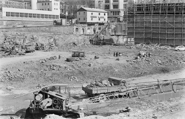 rivningstomt, byggetomt, anleggsmaskiner, lastebil, trapp, anleggsbrakke, Ruseløkka skole, Ruseløkkbasarene, Victoria terrasse