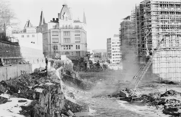 rivningstomt, byggetomt, kran, mur, Ruseløkka skole, Victoria terrasse, kontorbygninger, byggevirksomhet