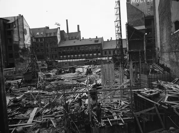 Folketeaterbygningen bygges på Basarhallenes tomt.