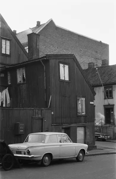 Nordre gate 5 i høyre bildekant; bygården med gavlveggen er Stolmakergata 6.