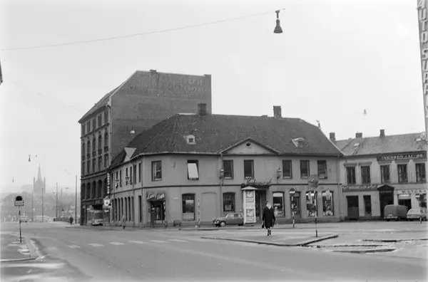 torg, forretningsgårder, Brugården, Brogaarden restaurant, biler, kvinne