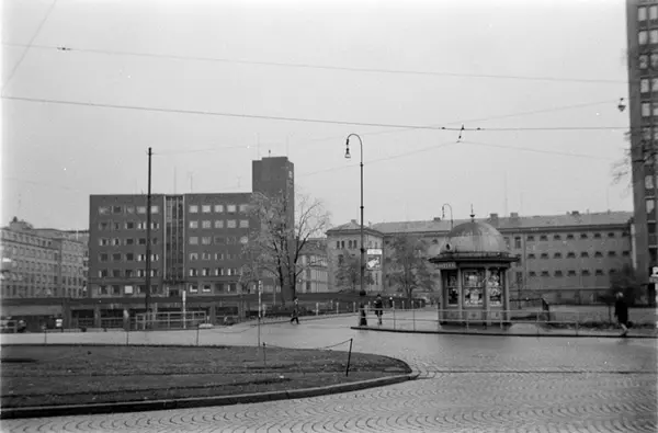 plass, kiosk, Hovedbrannstasjonen, fengsel, regjeringskvartalet, høyblokken, kontorbygning, brostein, trikkeskinner