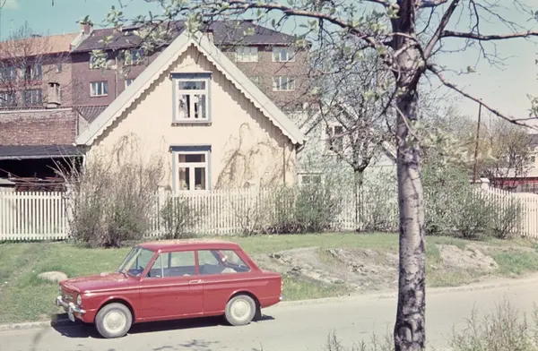 trehus, bolighus, gjerde, hage, bil, bygårder