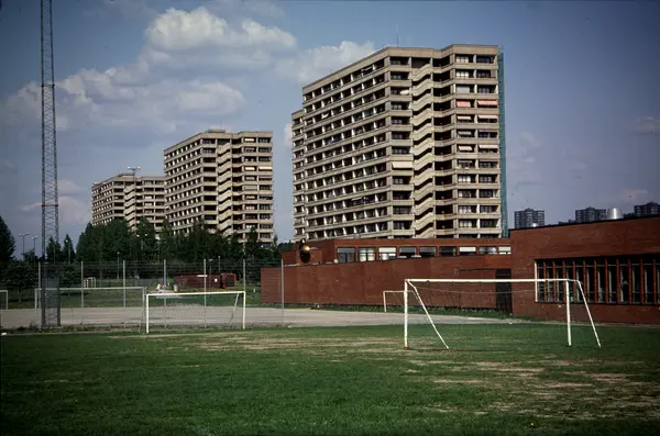 fotballbaner, lysmaster, Tveita skole, boligblokker