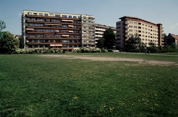 park, gresslette, boligblokker