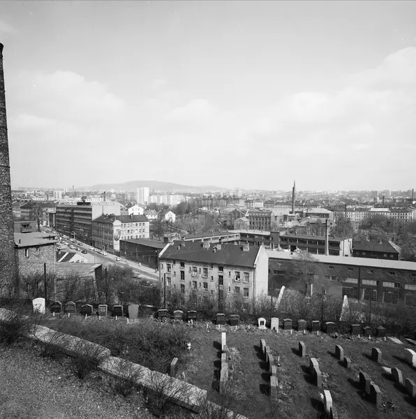 utsikt, kirkegård, gateløp, bygårder, boligblokker, fabrikkbygninger