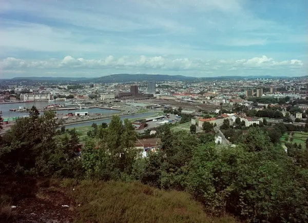 utsikt, skog, jernbane, Middelalderparken, ruin, vannspeil, fjord, havn, fergeterminal, bybebyggelse, Oslo Sentralstasjon, Thon Hotel Opera, Oslo Havnelager, Postgirobygget, Hotel Oslo Plaza, tollbodene