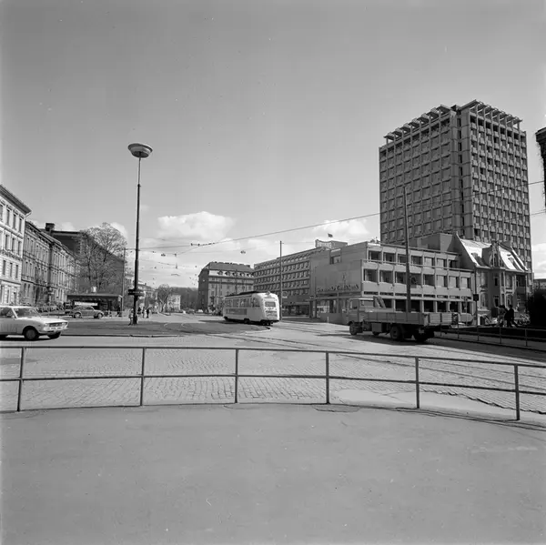 gateløp, plass, Ind-Eks-huset, bygårder, biler, trikk