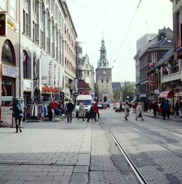 gateløp, forretningsgårder, biler, mennesker, gateliv, Oslo Domkirke
