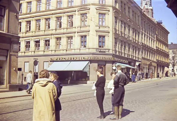 gate, mennesker, turantrekk, bygård, hjørnegård, Karen Johansen damekonfeksjonsforretning