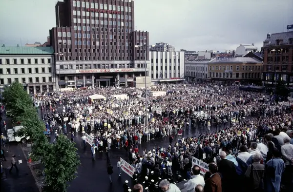 utsikt, torg, mennesker, bondedemonstrasjon, Folketeaterbygningen, forretningsgårder