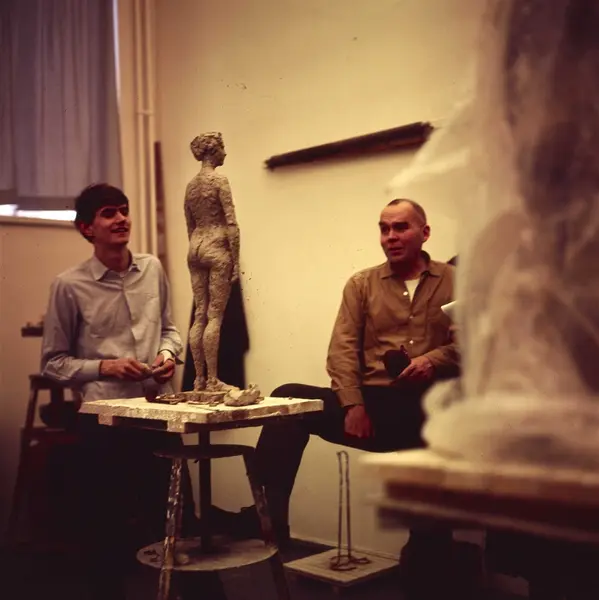 Kunstnernes Hus, interiør, Statens kunstakademi, skulptur, menn, billedhuggere