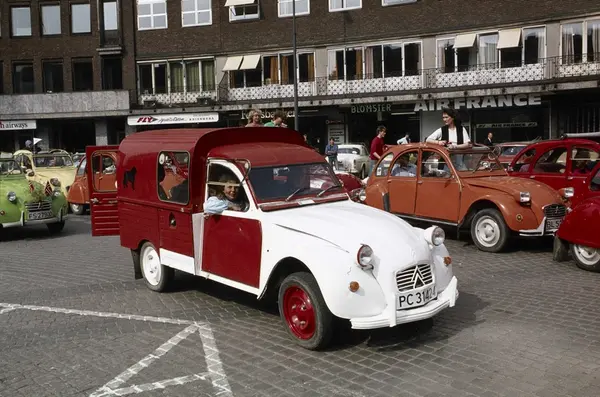 Fotografert 7. mai 1983 i forbindelse med et arrangement for å feire Citroën 2CVs 35-årsjubileum. Arrangementet var et samarbeid mellom importøren Norsk Citroën AS og Norsk 2CV Klubb.