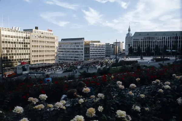 park, blomsterbed, utsikt, Kongeterrassen friluftsrestaurant, kontorbygninger