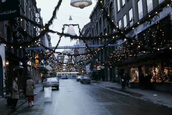 gateløp, julegate, forretningsgårder, Steen & Strøm stormagasin, mennesker, biler, trikk