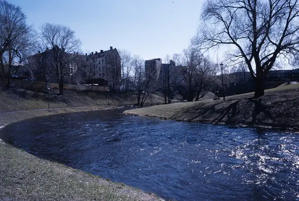 elv, park, gangvei, gatebelysning, bygård, trehus, Yrkesskolenes hybelhus