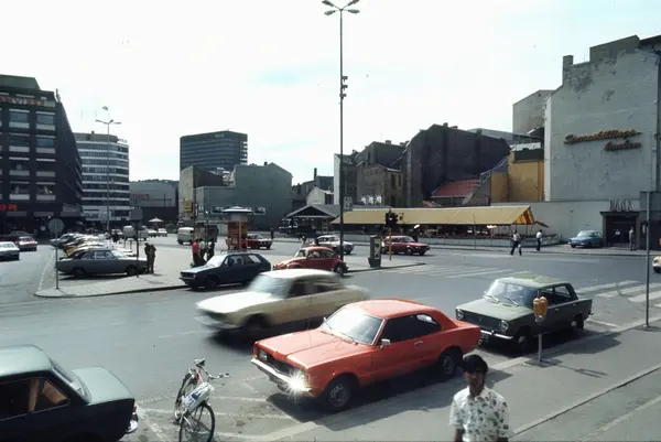 gate, biler, mennesker, forretningsgårder, bygårder, gavlvegger, friluftsrestaurant