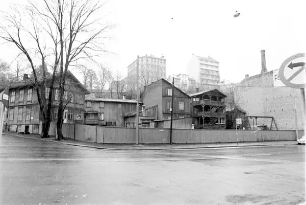 gatekryss, trehusbebyggelse, plankegjerde, bygårder