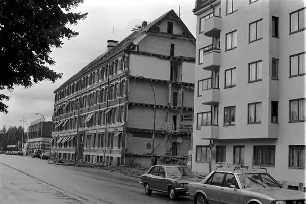 Elektrisk Bureau, fabrikkbygning, om- og påbygging til hovedkontor for Kreditkassen, rivearbeid, bygård, biler