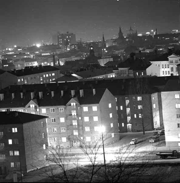 utsikt, boligblokker, bygårder, by, nattemørke