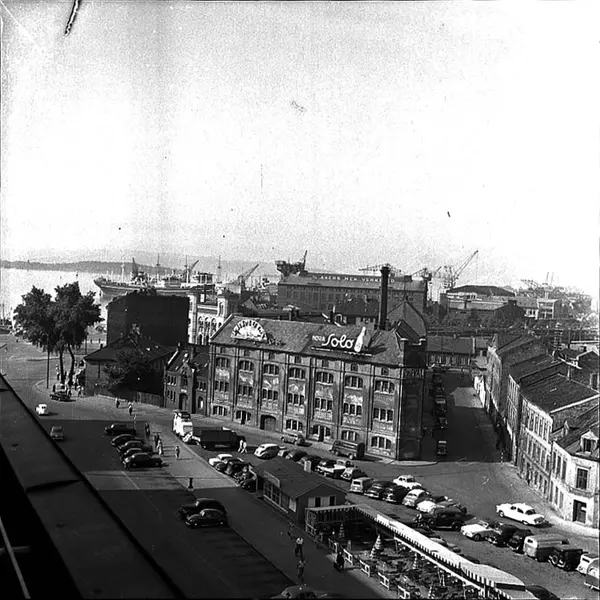 utsikt, Cheval dyrehospital, Vika politistasjon, bygårder, gateløp, biler, mennesker, friluftsrestaurant, Vestbanestasjonen, Akers mek. Verksted