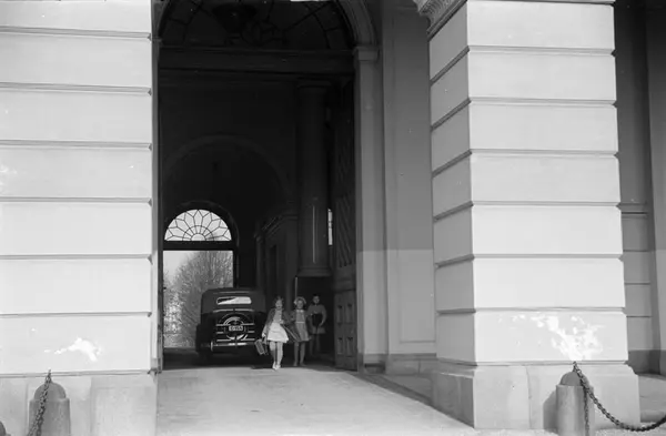 Slottet, port, jenter, elever ved "Prinsesseskolen", bil