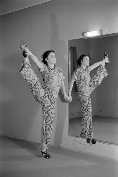 Lillebil Ibsen gjør morgengymnastikk.