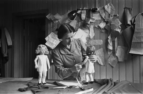 Rønnaug Petterssens dukkefabrikk, interiør, kvinne, dukkemaker, dukker