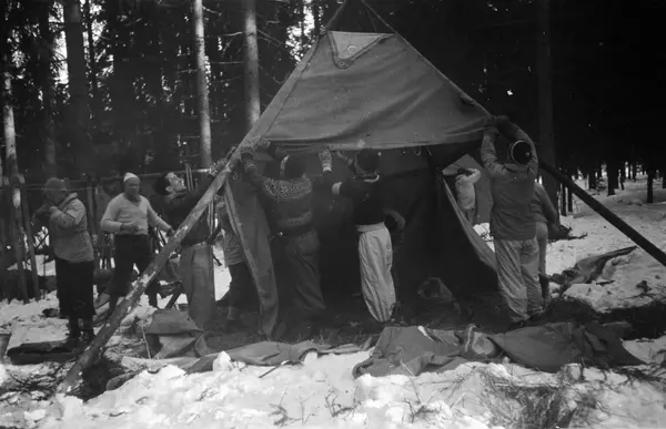 menn, studenter, frivillig militæropplæring, bygging av bivuak