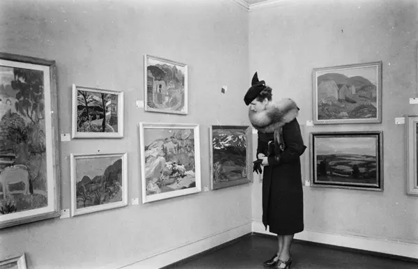 Unge Kunstneres Samfunds varebyttesentral, galleri, malerier, kvinne