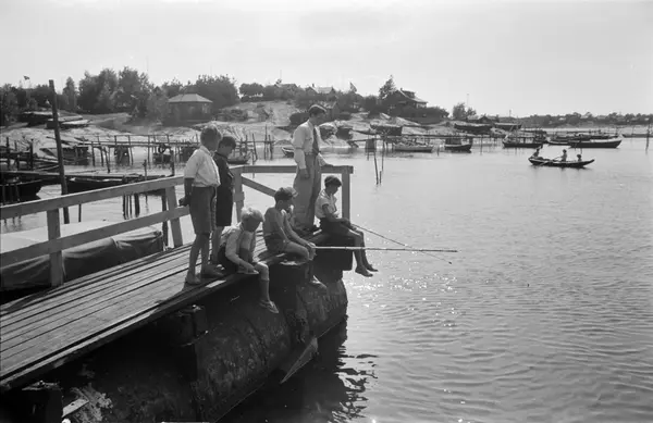 Romerbrygga, Lindøya vest, brygge, gutter, fiske, fjord, båter, hyttebebyggelse