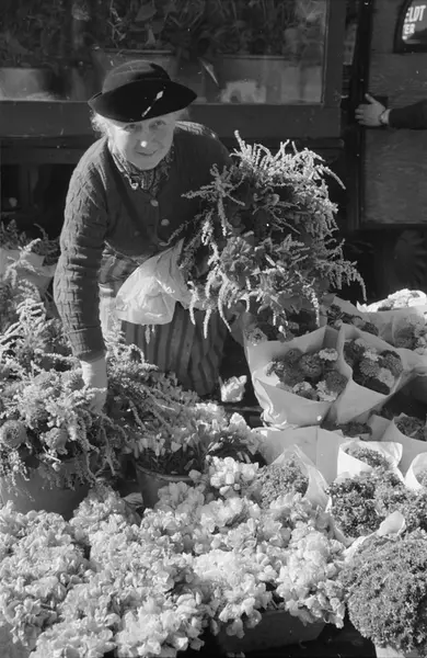 torg, kvinne, torgkone, blomster, torghandel