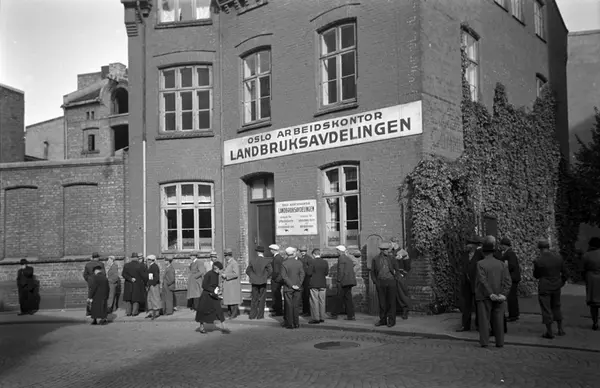 Oslo arbeidskontor, Landbruksavdelingen, gårdsplass, menn, kvinne