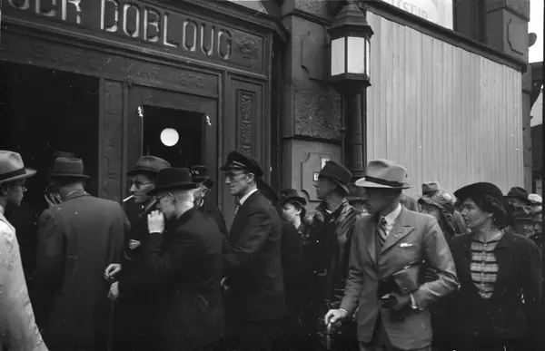Kø ved Brødrene Dobloug i Storgata 1.