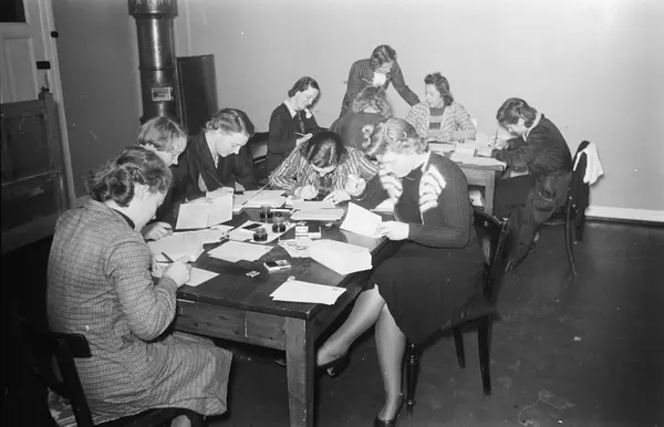 Kommunens tekstilkontor, interiør, kvinner