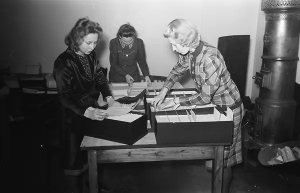 Kommunens tekstilkontor, interiør, kvinner