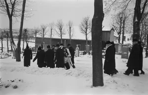 Østre Aker kirkegård, begravelse, kvinner, menn, marskalker, marskalkstaver, kiste, snø