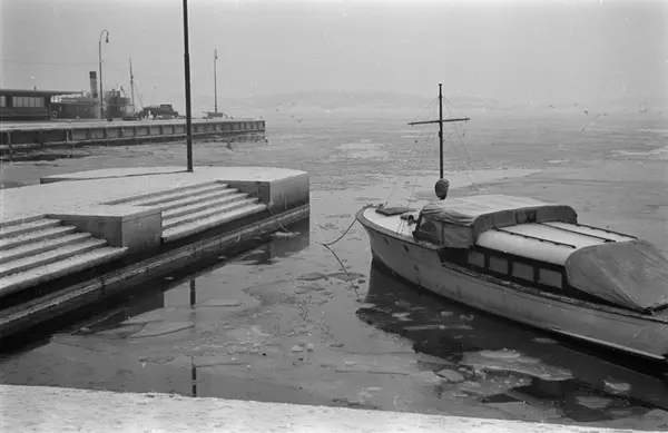 Båten er trolig en 36 fot krysser signert Rich. B. Furuholmen i 1934. Denne linjeføringen var vanlig for Furuholmen fra slutten av 1920-tallet til rundt midten av 1930-årene. Basert på det vi ser på bildet kan det være en båt basert på tegning 742 (Oslofjordmuseet). Den store "runde formen" over vindskjermen kan være en lyskaster. Gitt plasseringen av en lystbåt, vinterstid, på snei ved Rådhusbryggen, og at bildet er tatt i 1940, så kan det indikere at okkupasjonsmakten har tatt beslag i båten (i likhet med mange andre motorbåter) og brukt den til havneoppsyn og annet. Lyskasteren er i alle fall ikke på tegningen. En antagelse er derfor at bildet er tatt en gang i desember 1940, gitt ismengden. Rigmor Dahl Delphin (1908-1993) var ansatt som fotograf i ukebladet Alle Kvinner. Hennes negativarkiv ble i 2005 overført Oslo Bymuseum fra Gyldendal Norsk Forlag som var utgiver av bladet.