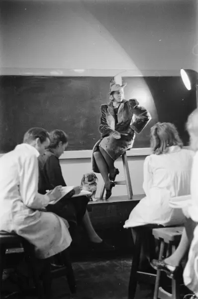 Statens Håndverks- og Kunstindustriskole, motelinjen, interiør, kvinner, mann, elever, modell