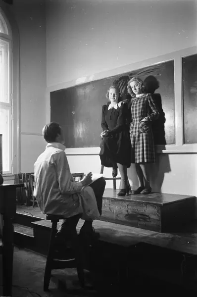 Statens Håndverks- og Kunstindustriskole, motelinjen, interiør, kvinner, mann, elever, modeller