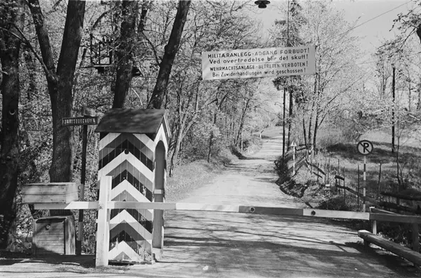 vei, bom, vaktpost, skilderhus, tysk skilt: Militæranlegg - adgang forbudt!