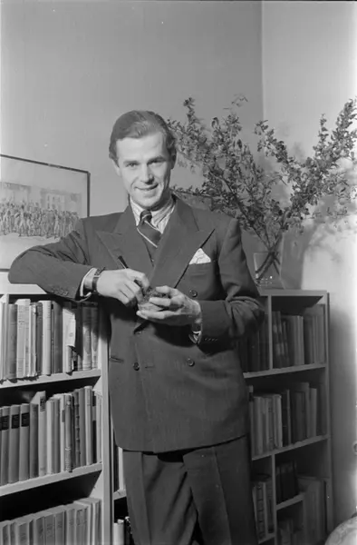 bolig, interiør, stue, mann, skuespiller, stående knefigur, pipe