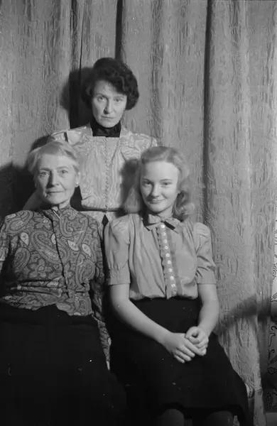 bolig, interiør, familiegruppe, kvinner, forfatter, sceneinstruktør, skuespillere, tre generasjoner