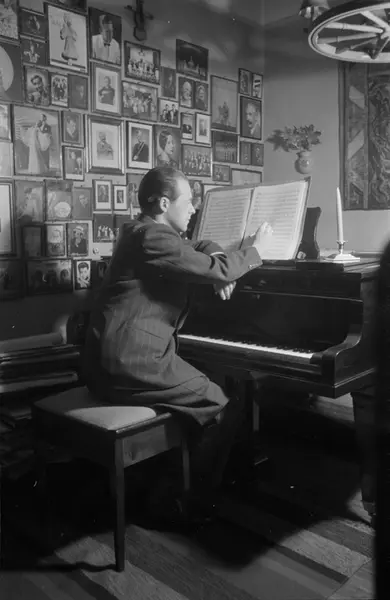 bolig, interiør, mann, dirigent, musiker, komponist, flygel, kollegaportretter
