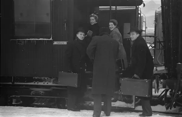 Jørn Ording til venstre. Rigmor Dahl Delphin (1908-1993) var ansatt som fotograf i ukebladet Alle Kvinner. Hennes negativarkiv ble i 2005 overført Oslo Bymuseum fra Gyldendal Norsk Forlag som var utgiver av bladet.