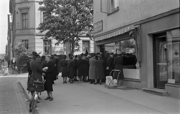 Kø ved Bislet fiskeforretning.